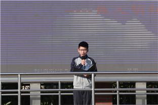 接下来张飞洋同学代表大家谈了他的感受。“礼貌待人,尊敬师长,这是初进校园时,老师反复强调的规范和要求。这是基本的行为规范。从小起我们就接受这样教育,文明知礼,或许这个话题很老,但它永远不会过期。对于学生和学校来说,这是一个永恒的话题。”