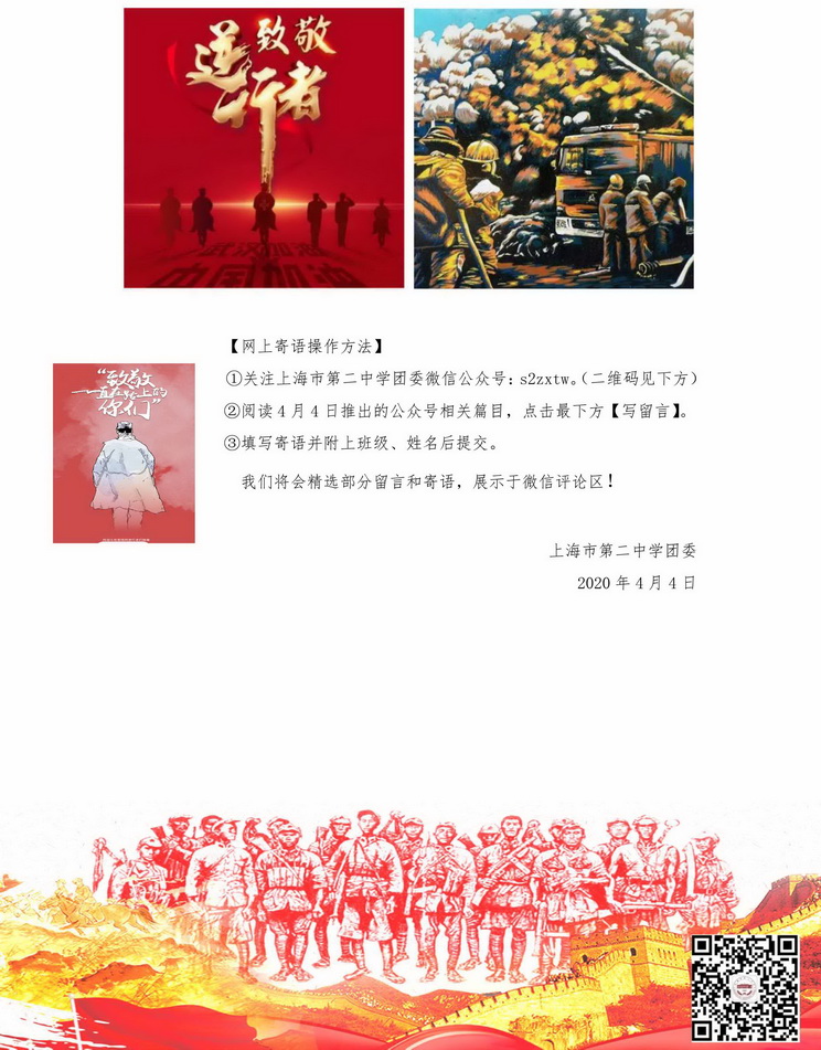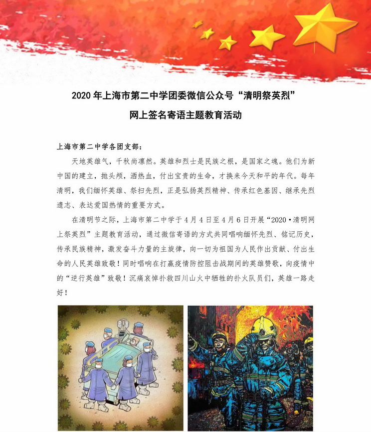 2020年上海市第二中学团委微信公众号“清明祭英烈”网上签名寄语主题教育活动