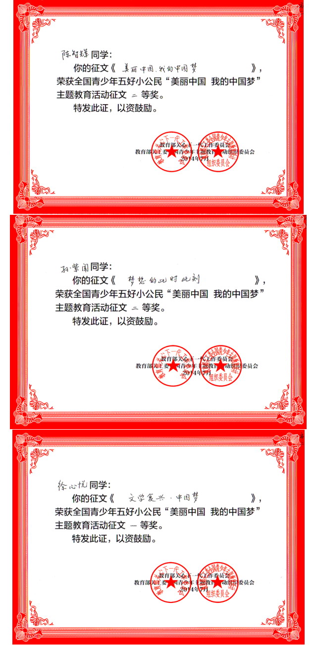 全国青少年五好小公民美丽中国我的中国梦主题教育活动征文获奖名单