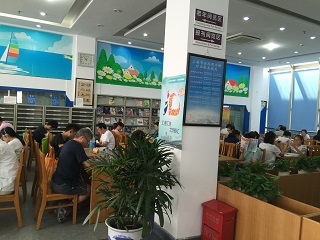 当天,因图书系统维护,所以无法进行借书和还书手续的办理。同学们便坐在书库出入口维持秩序,劝阻馆内喧哗之人及一些不文明的行为。