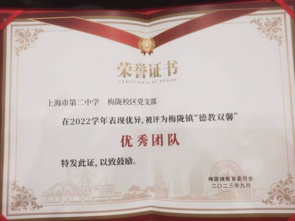 喜报|梅陇校区党支部被评为2022学年梅陇镇德教双馨优秀团队
