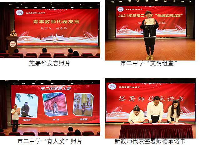 本次庆祝活动在迎接党的二十大背景下举行,大会围绕主题“责任意识”与“培育新人”开展。会上表彰了本年度教师评比获奖情况、年度校优秀教研组与年度文明组室;为三十年教育工作者颁发证书、赠送礼品;公布学科、班主任师徒带教名单。既肯定了我校教职员工一年来的付出与成绩,又激励着全体教师们守正创新,在继承市二优秀教育传统的同时寻求突破。