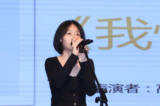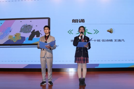 第二个节目是高一10的伍诗晴、王带来的诗朗诵《两人的朗诵铿锵有力,给人一种如沐春风之感