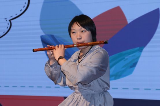 第三个节目乐器串烧,由高一8晏斯羽高二9李昊扬一起演奏。西洋和中国民族乐器融合在一起,一种独特的音色和表现力让现场观众如痴如醉。
