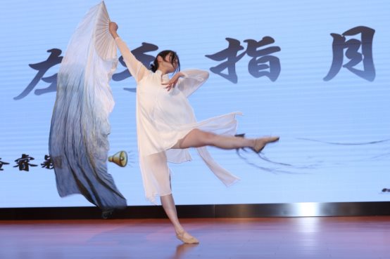 第四个节目舞蹈《左手指月》由高一8班的查睿颖带来,观众们都被其优美的舞姿与背景音乐所深深吸引